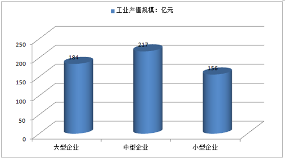 2016年镀铬光轴行业不同规模企业工业产值情况