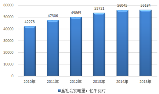 2010-2015年我国发电量走势图