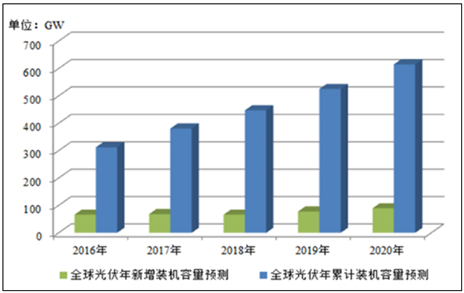 随着光伏发电效率的不断提高, 以及光伏组件成本和光伏系统安装成本的持续下降,未来光伏发电将有可能逐步实现平价上网。发电成本的下降以及各国政府的政策支持将进一步加快光伏行业的发展。目前,光伏行业经过深度调整,开始步入健康良性的发展轨道,行业的发展促使产业链上下游市场的崛起。随着多样化新技术的规模化应用和成本的持续降低, 光伏产品的市场细分化程度越来越高。总的来看,目前光伏行业市场变化主要取决于各国政策环境的影响,未来随着光伏系统价格的持续降低和发电效率的不断提高, 预计光伏装机量将持续增长。