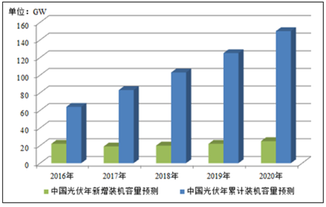 据统计,2015 年我国光伏新增装机容量为 15.13GW,继续保持全球最大的光伏市场地位。考虑到“十三五”期间光伏成本可能进一步降低,国内按市场规模可以再扩大,预期2020年光伏发电总装机量可能达到1-1.5 亿千瓦6。
