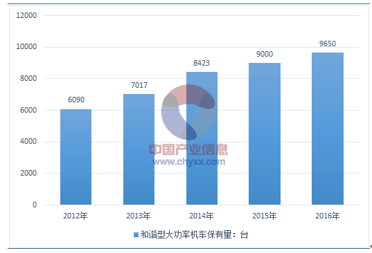2009-2016年中国和谐型大功率机车保有量