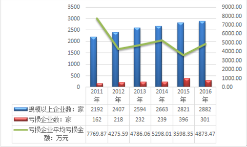 图表:2011-2017年我国配电开关控制设备制造行业亏损企业数量增长趋势图
