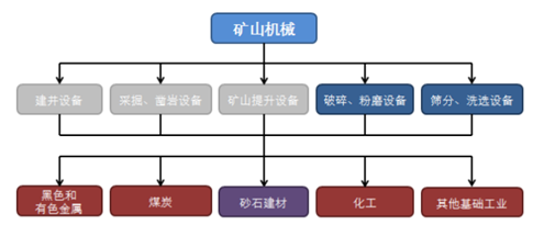 矿山机械是对固体矿物及石料进行开采和加工处理的专用设备,主要包括建井设备、采掘凿岩设备、矿山提升设备、破碎粉磨设备、筛分洗选设备五大类。