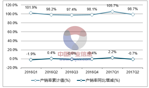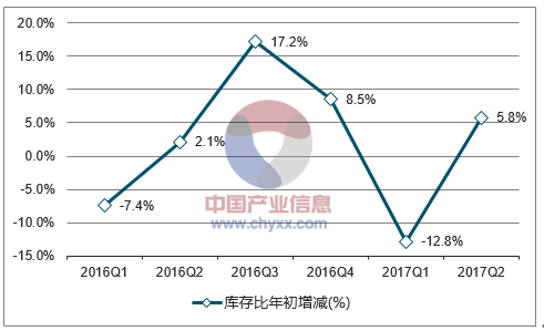图表:2014-2017年中国橡胶加工设备制造行业产成品增长趋势图