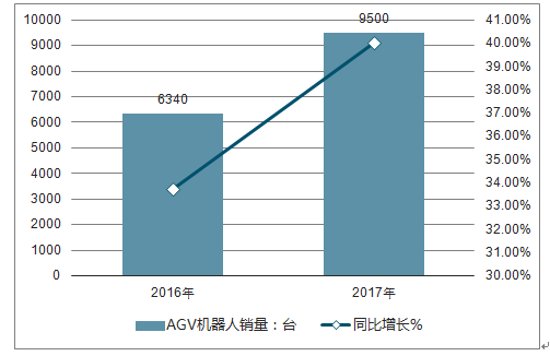 目前,国产AGV机器人正步入快速增长期。2016年国产AGV机器人销量为6340台,较2015年同比增长33.7%。预计,2017年国产AGV机器人销量将达到9500台,同比增速超40%。国产AGV机器人产业是高附加值产业。