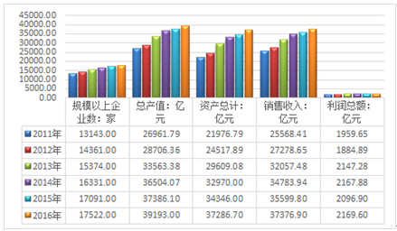 2016年我国专用设备制造行业规模总资产达到37286.70亿元,较上年同期增长8.56%。行业销售收入为37376.90亿元,较上年同期增长4.99%。2016年行业利润总额为2169.60亿元,较上年同期增长3.47%。