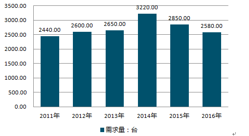 2012-2016年中国溴冷机行业需求量情况