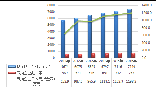 截至2016年我国医药行业规模以上企业数量达7449家,当中757家企业出现亏损,亏损企业平均亏损金额为1198.2万元。