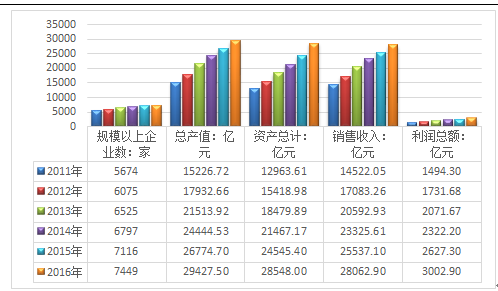 2016年我国医药行业规模总资产达到28548.00亿元,较上年同期增长16.31%。行业销售收入为28062.90亿元,较上年同期增长9.89%。2016年行业利润总额为3002.90亿元,较上年同期增长14.30%。