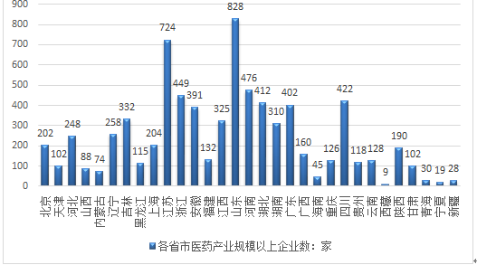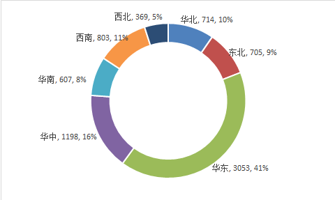 2016年底我国医药制造业规模以上企业数达到7449家,其中华北地区规模以上企业714家;东北地区规模以上企业705家;华东地区规模以上企业3053家;华中地区规模以上企业1198家;华南地区规模以上企业607家;西南地区规模以上企业803家;西北地区规模以上企业369家。