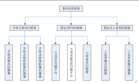 条码识读设备是一种通过扫描条码图形,并利用光电转换和译码技术将图像信息转换为计算机可直接接受的数字信号,实现信息输入的电子设备。条码识读设备分为手持式条码扫描器、固定式POS扫描器、固定式工业类扫描器等三大类。