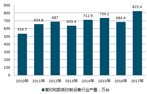 2010-2018年中国复印和胶版印制设备行业产量情况
