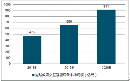 2018-2020 年全球教育交互智能设备市场规模(单位:亿元)