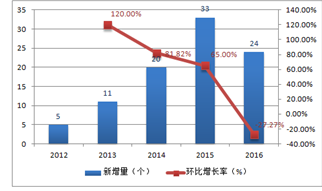 2012-2016年中国智能POS相关专利申请数量