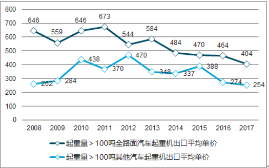 起重量超过100吨的全路面汽车起重机比其他汽车起重机出口均价高出150万元/吨
