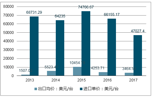 2013-2017年中国丝网印刷设备进出口价格情况