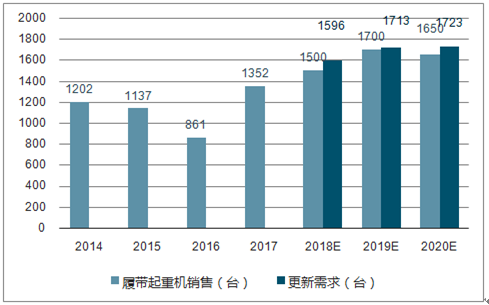 图表 2016-2018年履带起重机销量