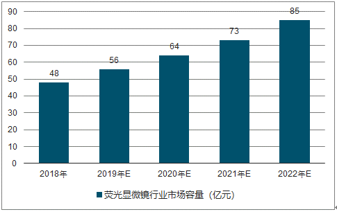 2018-2022年荧光显微镜行业市场容量预测(亿元)
