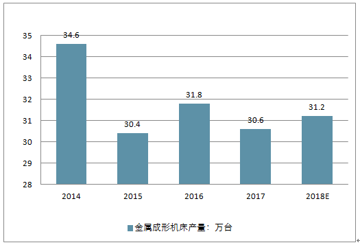 2017年中国金属成形机床累计产量为30.6万台,预计2018年中国金属成形机床累计产量将达31.2台。