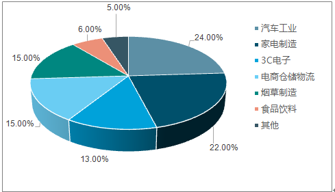 此外2016年,除了工业级的应用外,AGV开始向商业行业推广应用,其中对AGV需求最大莫过于电商仓储物流、烟草和3C电子行业,三者占比分别为15%、15%和13%。