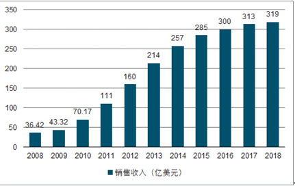 图表:2016-2018年中国手机触摸屏市场规模及其增速走势图