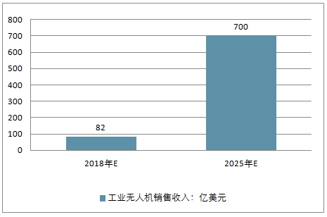 2018年,全球无人机市场销售收入将突破80亿美元,保守估计到2025年,行业市场规模将超过700亿美元。未来十年,无人机行业将处于高速发展时期。