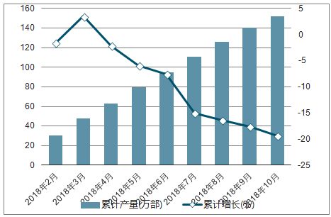 2018年2-10月中国传真机各月累计产量及同比增长走势