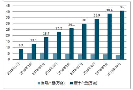 2018年2-10月中国金属属切削机床各月当月产量及累计产量走势