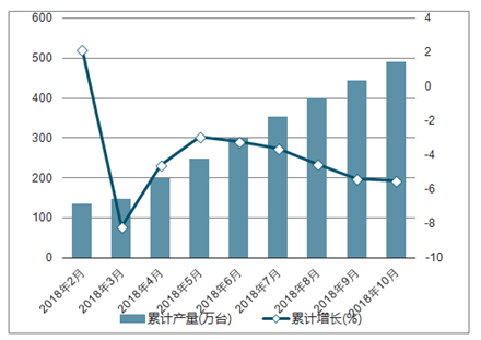2018年2-10月中国复印和胶版印制设备各月累计产量及同比增长走势