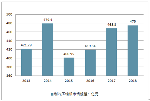 图表2012-2018年中国制冷压缩机市场规模变化图