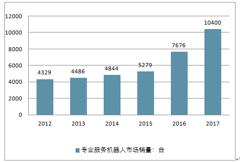 2012-2017中国专业服务机器人市场销量(单位:台)