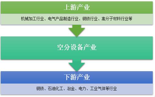空气分离设备生产所使用的主要原材料为铝材及钢材等金属材料,除此之外上游行业还包括机械加工行业、高分子材料行业等;空气分离设备广泛应用于传统的冶金、新型煤化工、大型氮肥、专业气体供应等领域。作为上述行业工业装置的重要配套设备,空气分离设备在需求量快速增长的同时,呈现出快速的大型化趋势。