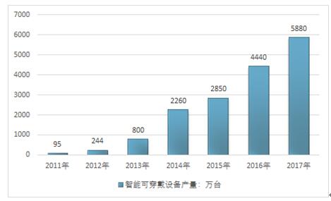 2011-2018年中国智能可穿戴设备行业产量情况