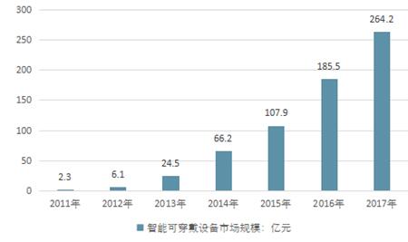 可穿戴设备市场的迅速升温吸引了众多企业厂商以及消费者,但是就目前来看,市场还处于初期阶段,正待领导者的出现。2018年我国可穿戴设备市场规模达264.2亿元。