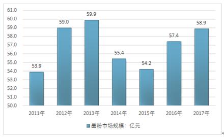 2016年我国墨粉市场规模为57.4亿元,2018年我国墨粉市场规模增长至58.9亿元。