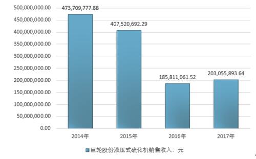 2014-2017年巨轮股份液压式硫化机销售收入走势图