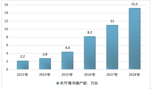 2013-2019年中国光纤激光器行业产能情况