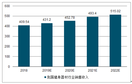 2018-2022年我我国健身器材行业销售收入预测
