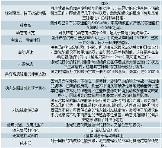 激光陀螺仪优点