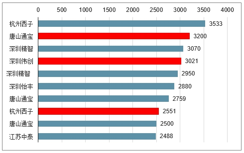2017 年,行业前三十企业国内销售额 110.42 亿元,占上报企业销售总额的 74.7%,安装泊位数 59.1 万个,在国内新增泊位中占比 72.9%。行业内营收规模最大的杭州西子智能市占率仅为 5.3%(2017 年收入估计 为 7.8 亿元左右),五洋停车并购深圳伟创和天辰智能后市占率约为 4.7%,居行业第二位。从 2018 年机械式停车设 备招标情况看,杭州西子、深圳怡丰、唐山通宝、深圳伟创、江苏金奥、杭州大中泊奥、山东天辰是业内规模较大的公司,杭州西子、深圳伟创和山东天辰中标数量分别为 57、22 和 15 个;从中标金额看,中标金额前十位的项目 中深圳伟创夺得 1.35 亿元,占比 28%,杭州西子获得 3197 万元,占比 6.6%,而 2017 年中标前十位金额中深圳伟创 仅占 10.4%,杭州西子占比达到 21%。预计 2018 年,五洋停车市占率有望超越杭州西子,获得机械式停车设备行业头把交椅。