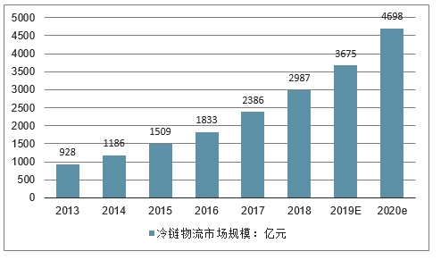 2017年中国冷链物流市场规模为2386亿元,根据预计2020年,市场规模将达到4700亿元,年增速保持在25%左右。
