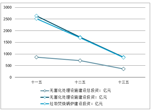 “十一五”至“十三五”期间我国城镇生活垃圾处理投资规划额及垃圾焚烧炉投资规模估算(单位:亿元)