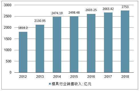 2017年中国模具行业销售收入达2663.42亿元,同比增长2.31%;2019年中国模具行业销售收入达到2753亿元左右。