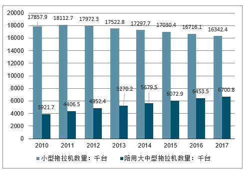 2010-2017年我国大中型及小型农用拖拉机数量走势