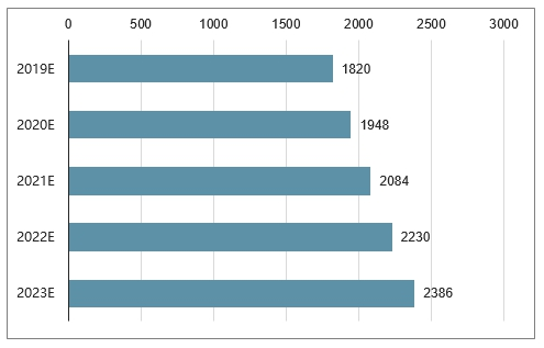 2019-2023年中国喷枪需求量预测(单位:万个)