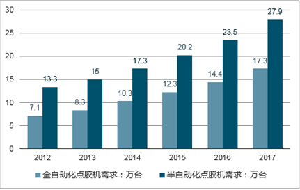 2012-2017年我国全自动化点胶机与半自动化点胶机需求分析预测