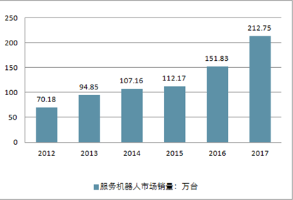 2012-2017中国服务机器人市场销量(单位:万台)