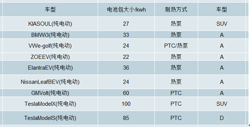 二、2019年新能源车热泵主要潜力品种分析
