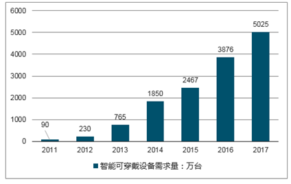 2011-2017年中国智能可穿戴设备行业销量情况