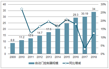 2009-2019年中国自动门控制器市场规模及变化趋势